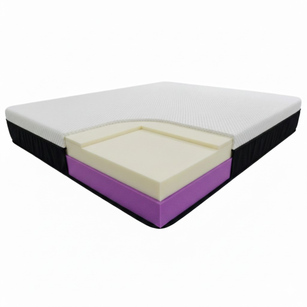 מזרן איכותי המשלב תמיכה קשיחה עם נוחות בזכות שכבת ויסקו מתקדמת בגובה 8 ס"מ. ליבת ספוג כחול קשיח וספוג סגול גמיש מספקת איזון מושלם בין יציבות לרכות. בד מגבת נעים, נושם ועמיד משדרג את חווית השינה.